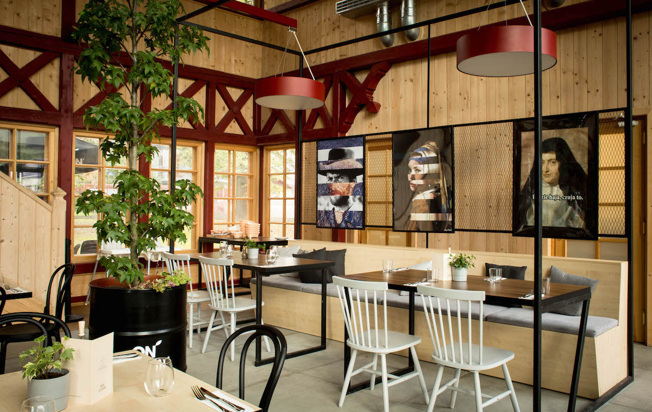 Zabytkowy budynek po gruntownym remoncie pomieści chyba z setkę gości. W centrum znajduje się bar, a nad nim drewniano-szkieletowa antresola. Bez zbędnych błyskotek, kiczowatych aranżacji czy niepasujących do niczego przedmiotów. W sezonie letnim goście mogą zająć miejsca przy stolikach na zewnątrz.
