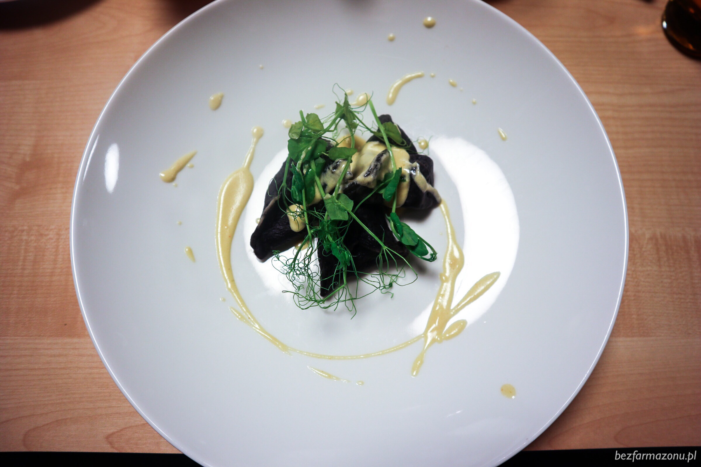 Na zdjęcie nie załapał się tatar francuski (24 PLN). Talerz wyglądał podobnie do tego z pierwszej wizyty, jednak pewna składowa bardzo go od pierwowzoru odróżniała. Chodzi o truflową emulsję, która nie występowała w październikowej wersji, a w tej nadawała siekanej polędwicy cudny aromat.