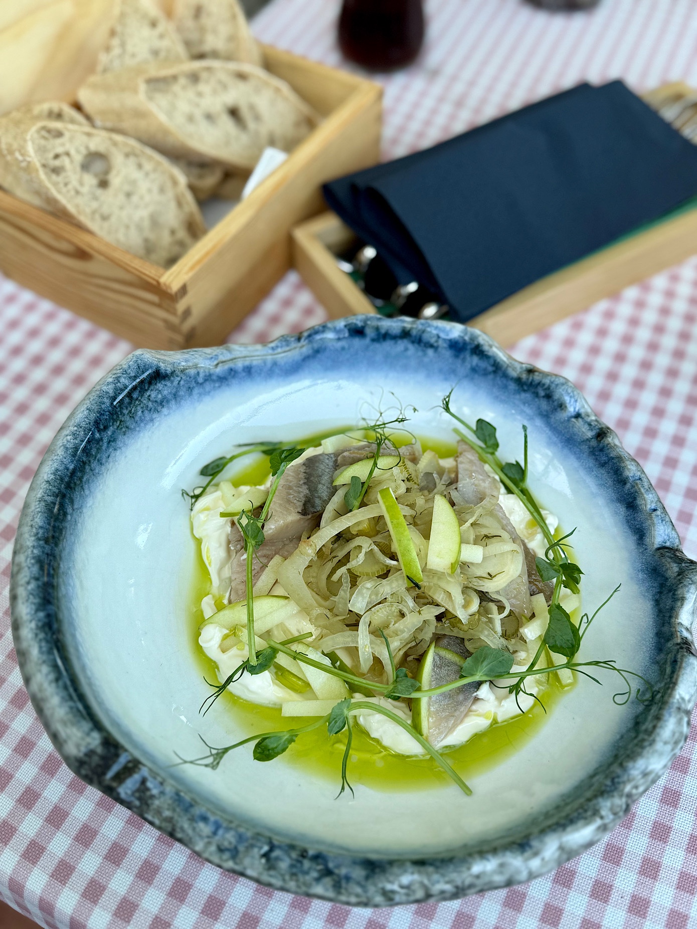 Taki na przykład śledź matjas z sałatką z kopru włoskiego i zielonego jabłka z creme fraiche i oliwą to wydatek 49 PLN. Porcja jak na przystawkę jest spora, smakowo okey.