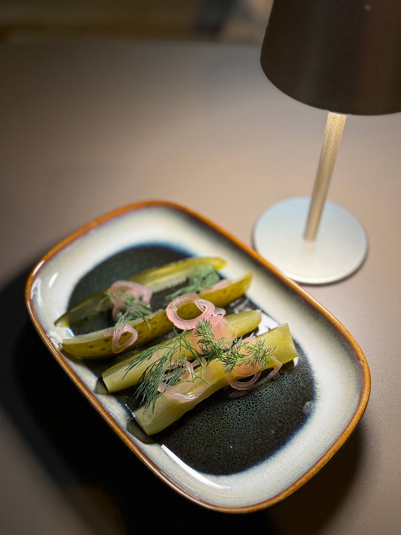W sierpniu 2025 spacerując z ziomkiem M. po Podgórzu zatrzymaliśmy się na szybkie testy. Po złożeniu zamówienia na ręce arcymiłej kelnerki otrzymaliśmy czekadełko: małosolne, marynowana cebulka, koperek lekko podlane oliwą!