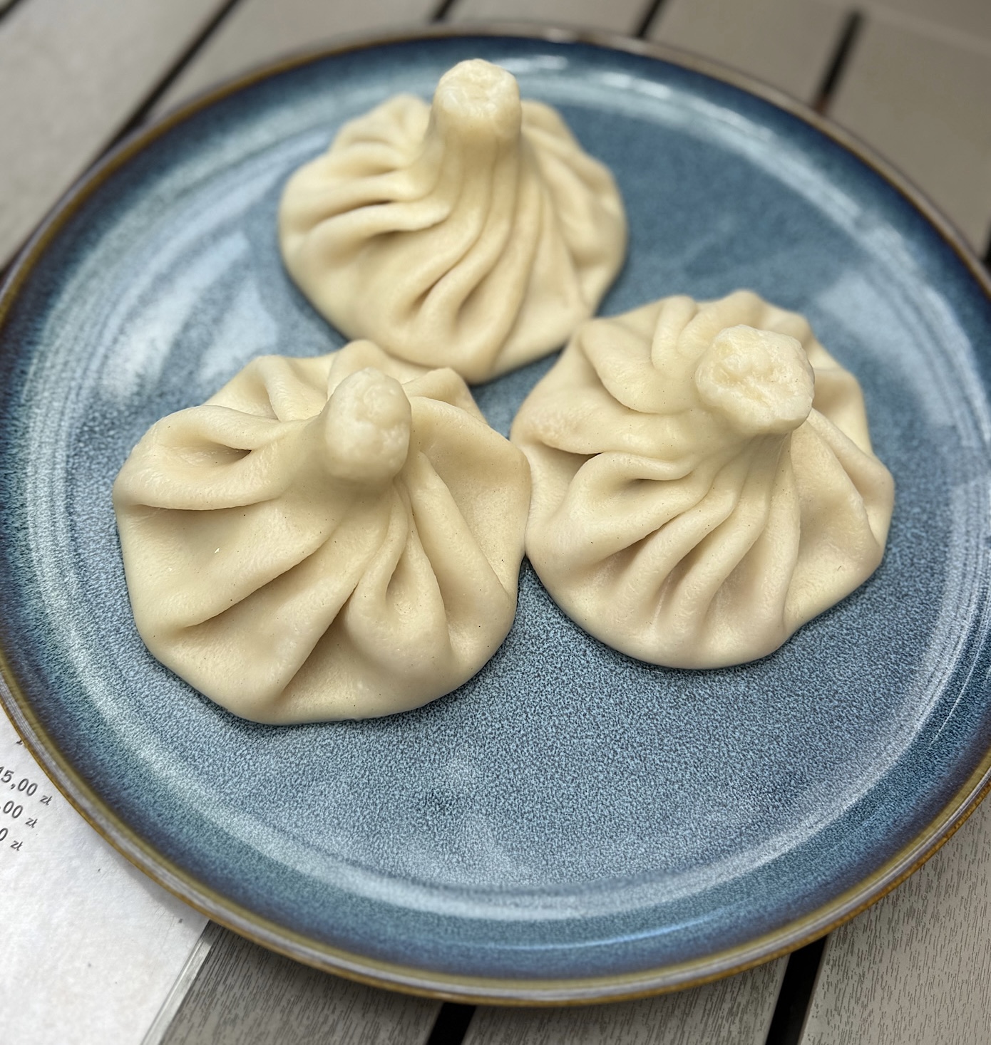 Na foto są również chinkali z jagnięciną (3szt. 33 PLN).