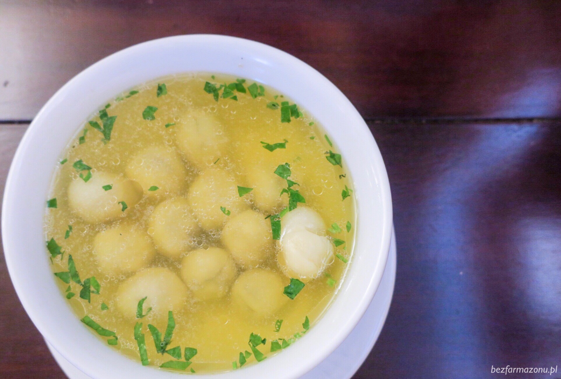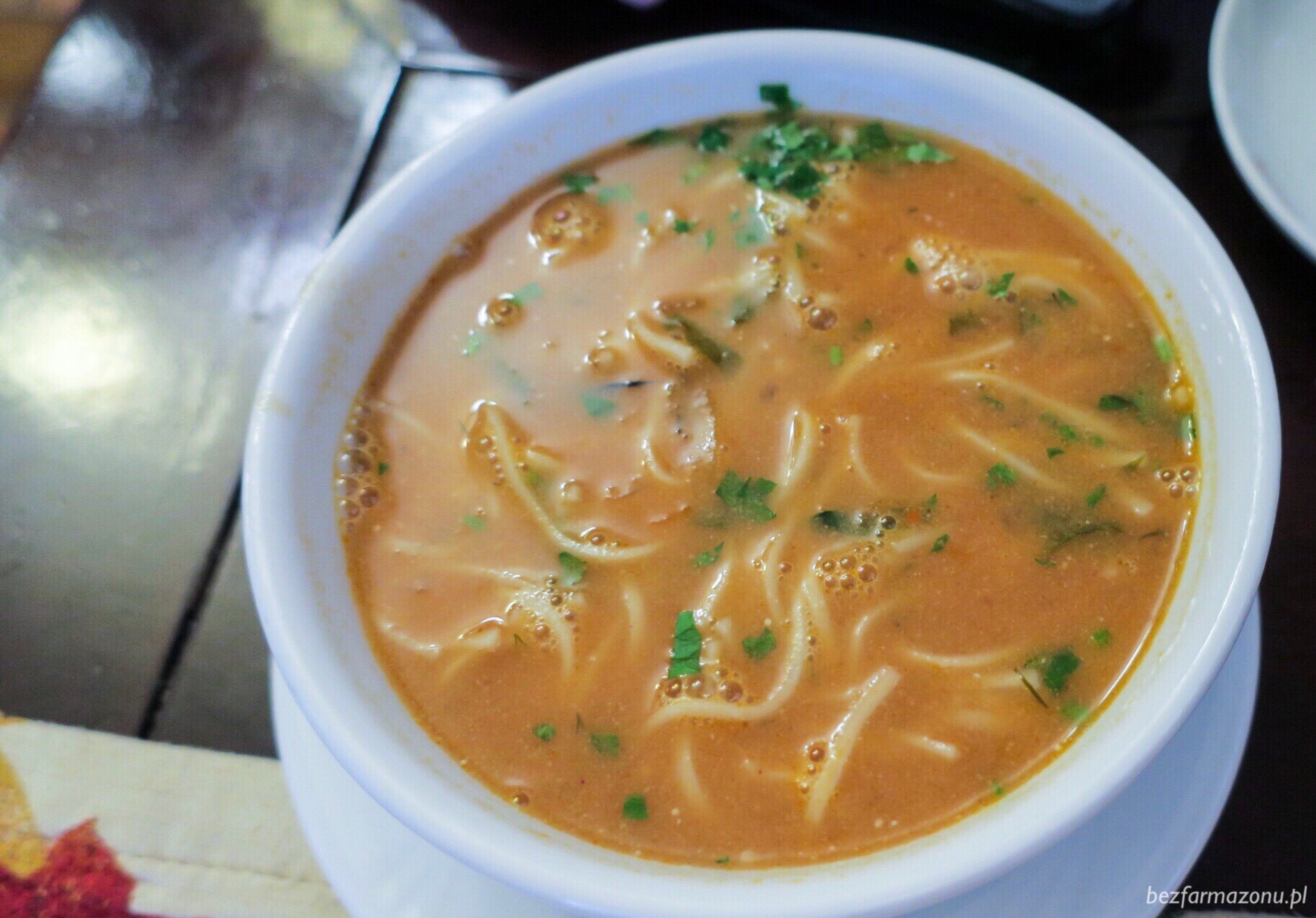 Rosół z kołdunami (8zł), rosół z makaronem (7zł) oraz zupa dnia którą była pomidorowa z makaronem (6zł). Wszystkie w 300ml miseczkach, gorące, aromatyczne i smaczne. W kołdunach wyraźny smak mięsa.