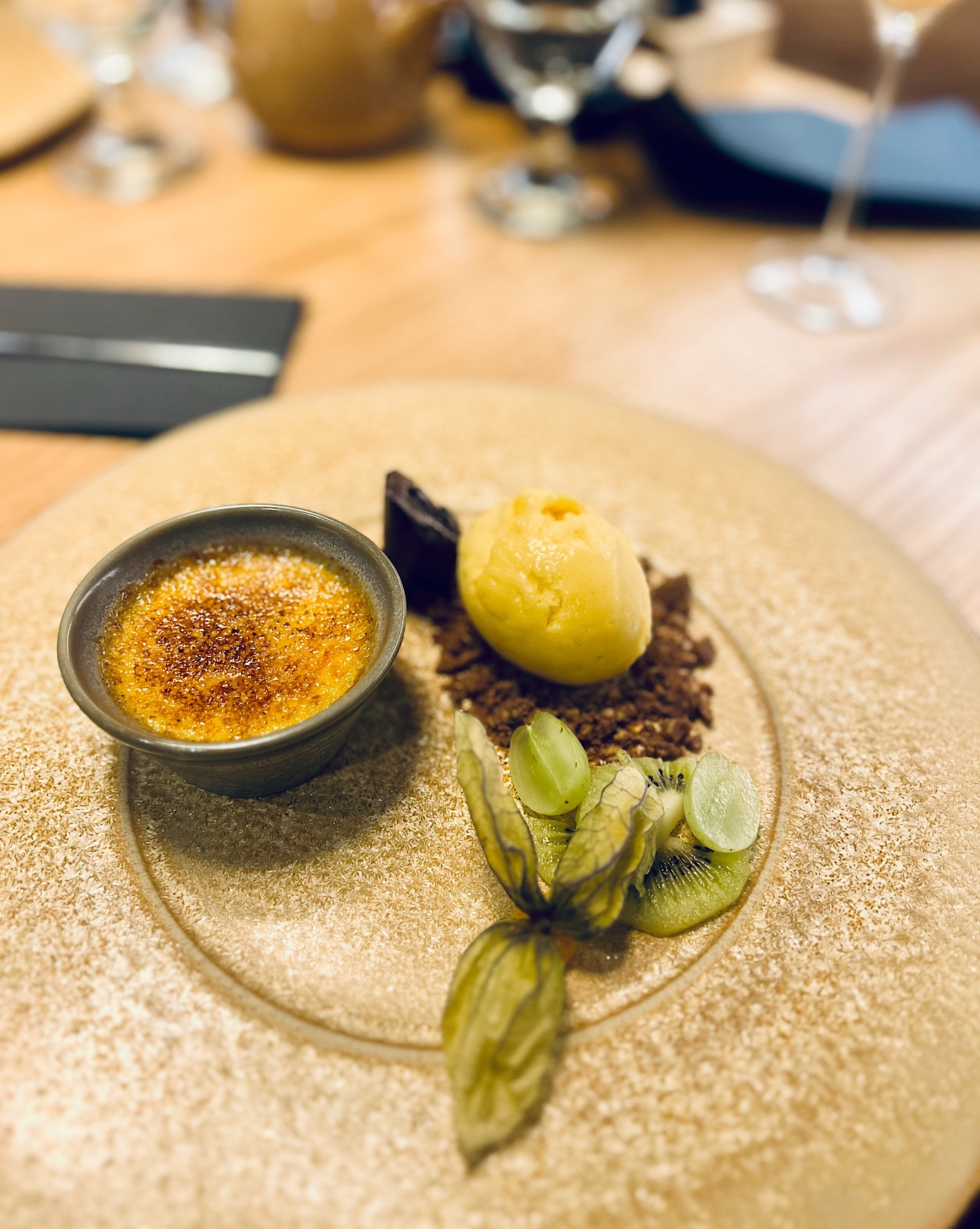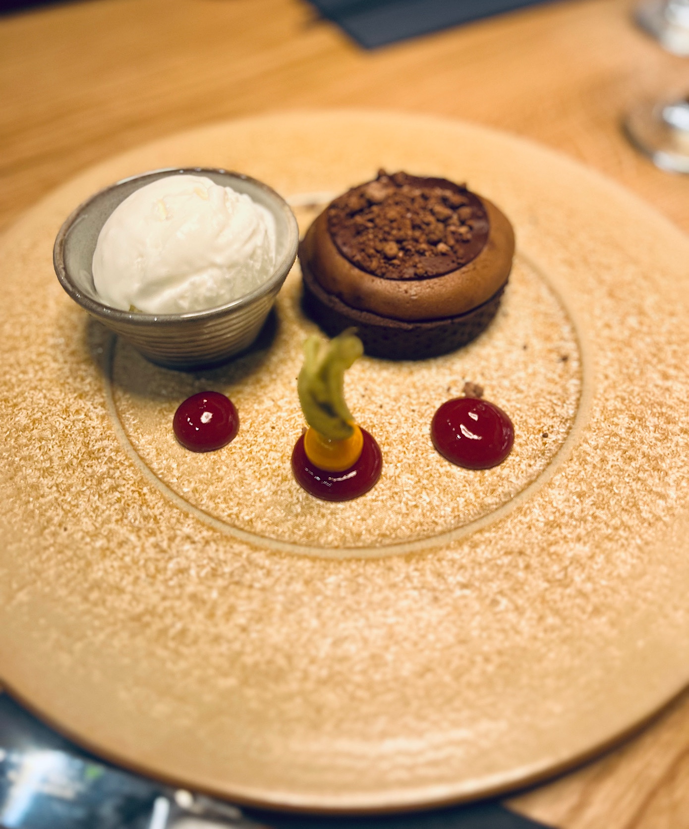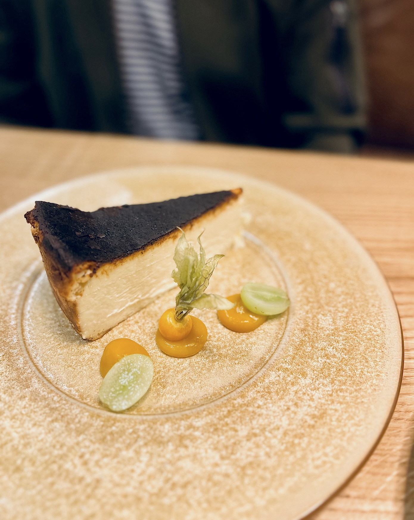 Desery wykonano zgodnie z obowiązującym kanonem – UNO, DOS, TRES (29 PLN) to pralina, crème brûlée i lody, SERNIK BASKIJSKI (29 PLN) kontrapunktował rabarbar, a CIASTKO CZEKOLADOWE (35 PN) z płynnym gęstym wnętrzem komponowało się wzorowo z lodami jogurtowymi.