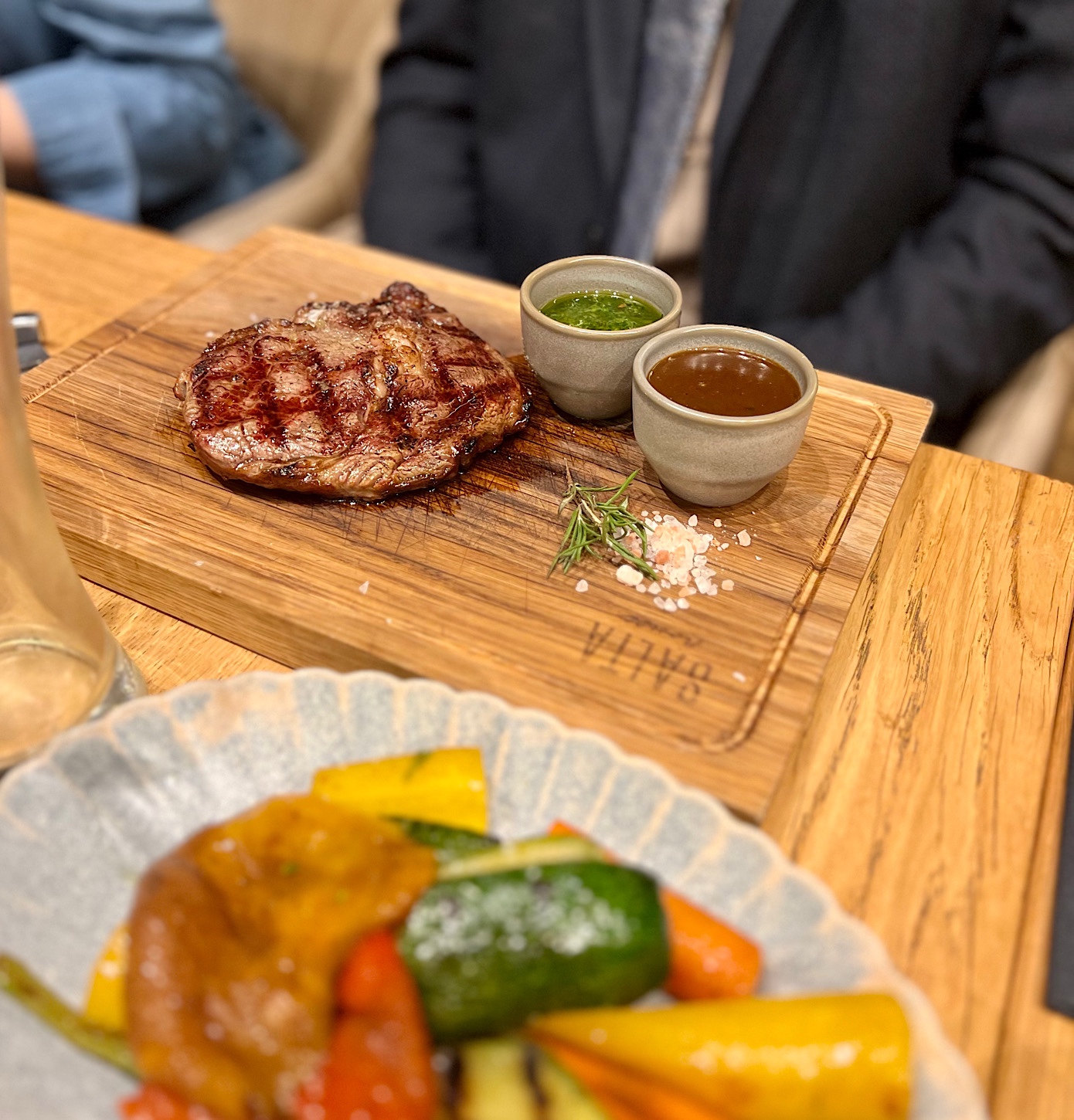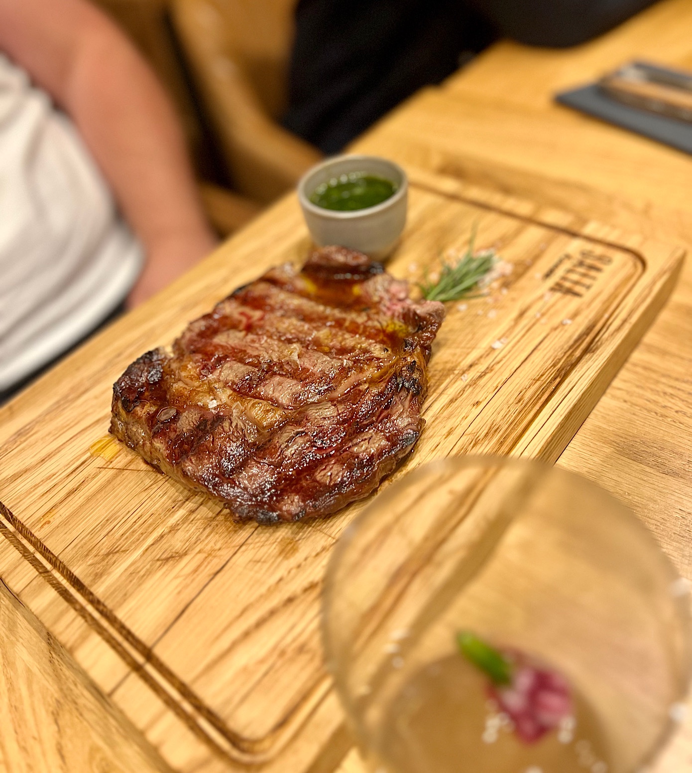 Gdy towarzysze skupili się na deserach, ja zamiast słodkiego zakończenia dnia, wybrałem… stek. ANTRYKOT (250g. – 125 PLN) z argentyńskiej wołowiny campo, który wysmażono idealnie z zamówieniem na medium rare. Mięso było soczyste i mimo braku sezonowania na sucho – pełne smaku i satysfakcjonujące.