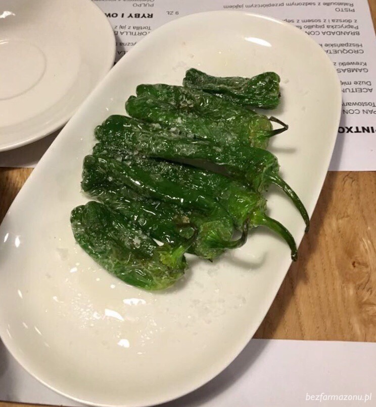 - ciepłe, słodkie smażone papryczki (13 PLN) obficie podsypane solą i nie takie znowu słodkie jakby się mogło wydawać z nazwy w karcie.