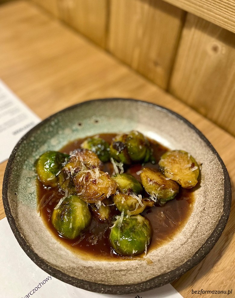 Policzki ze świni iberyjskiej karmionej żołędziami wraz z puree z pasternaku (27 PLN) to klasa sama w sobie. Fantastyczne mięso, wybornie kremowe warzywo, turboaromatyczny sos – tak samo jak ten z brukselek idealny do maczania w nim pieczywa. Więcej słów nie trzeba.