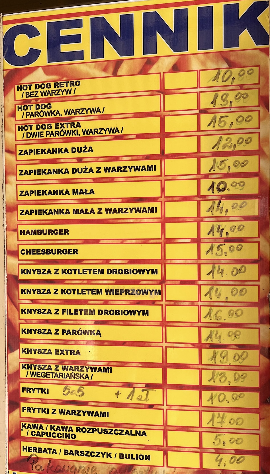 Końcem września 2023 odwiedziłem najulubieńszą budkę celem ukojenia głodu smakami z przeszłości. Mimo inflacji, obecne ceny nie powalają. Zobaczcie sami.