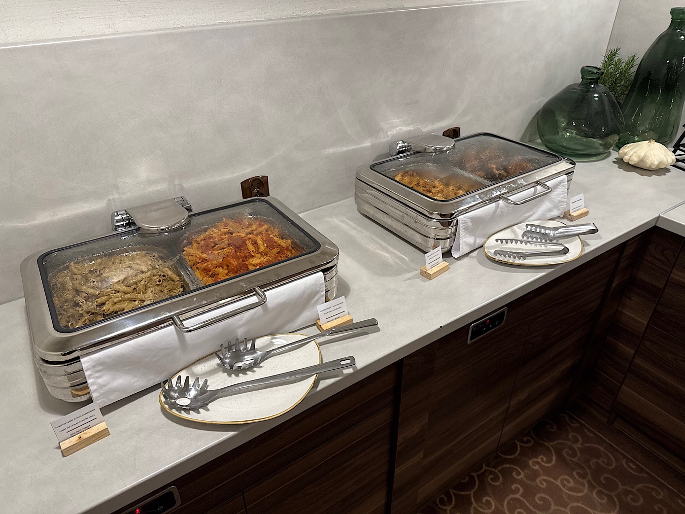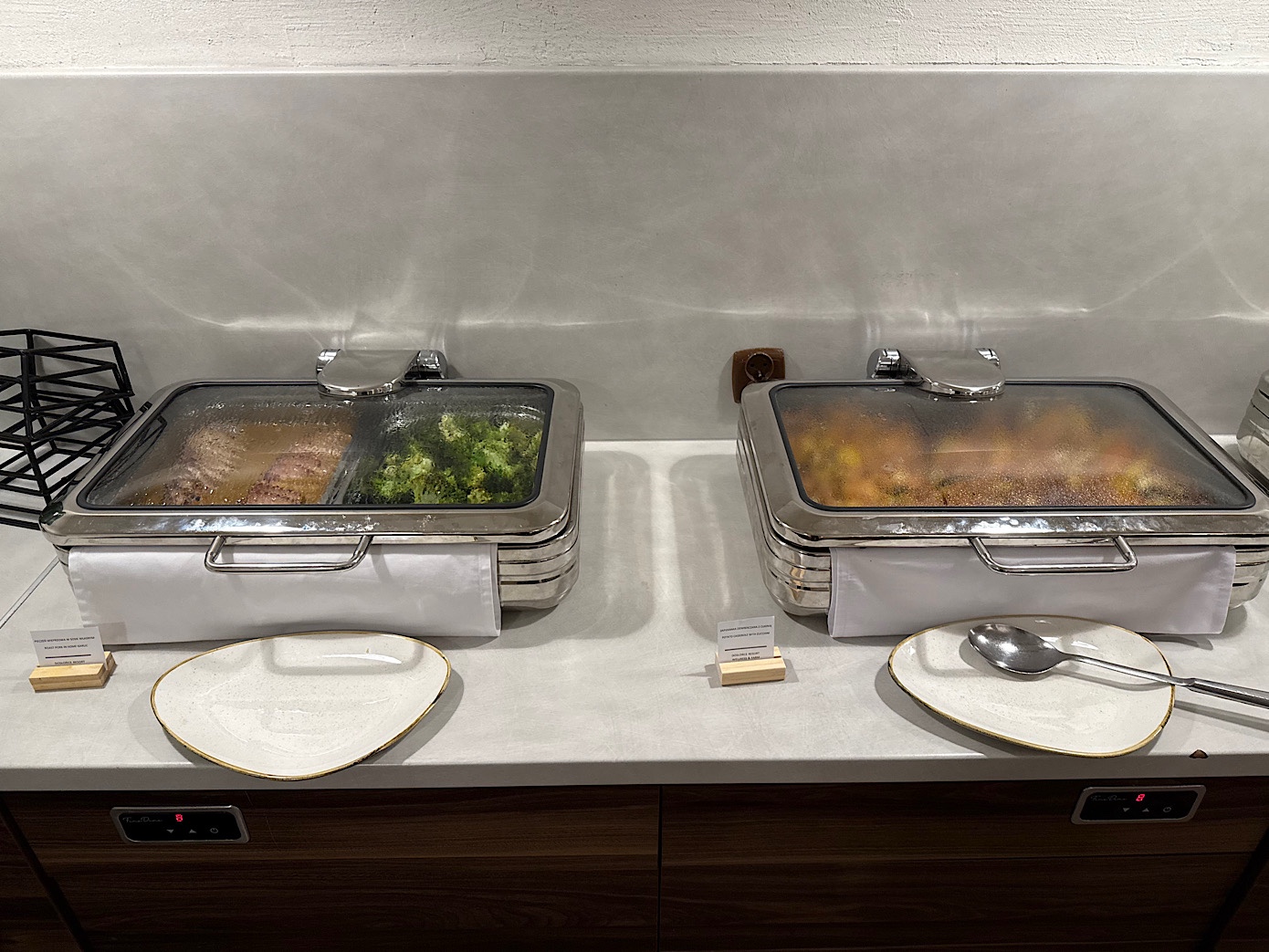 Każdego dnia w bemarach wdzięczyły się pozycje na ciepło: kiełbaski, parówki, jajecznica, warzywa z grilla, Oprócz nich naleśniki, tosty, powidła i świeże warzywa.