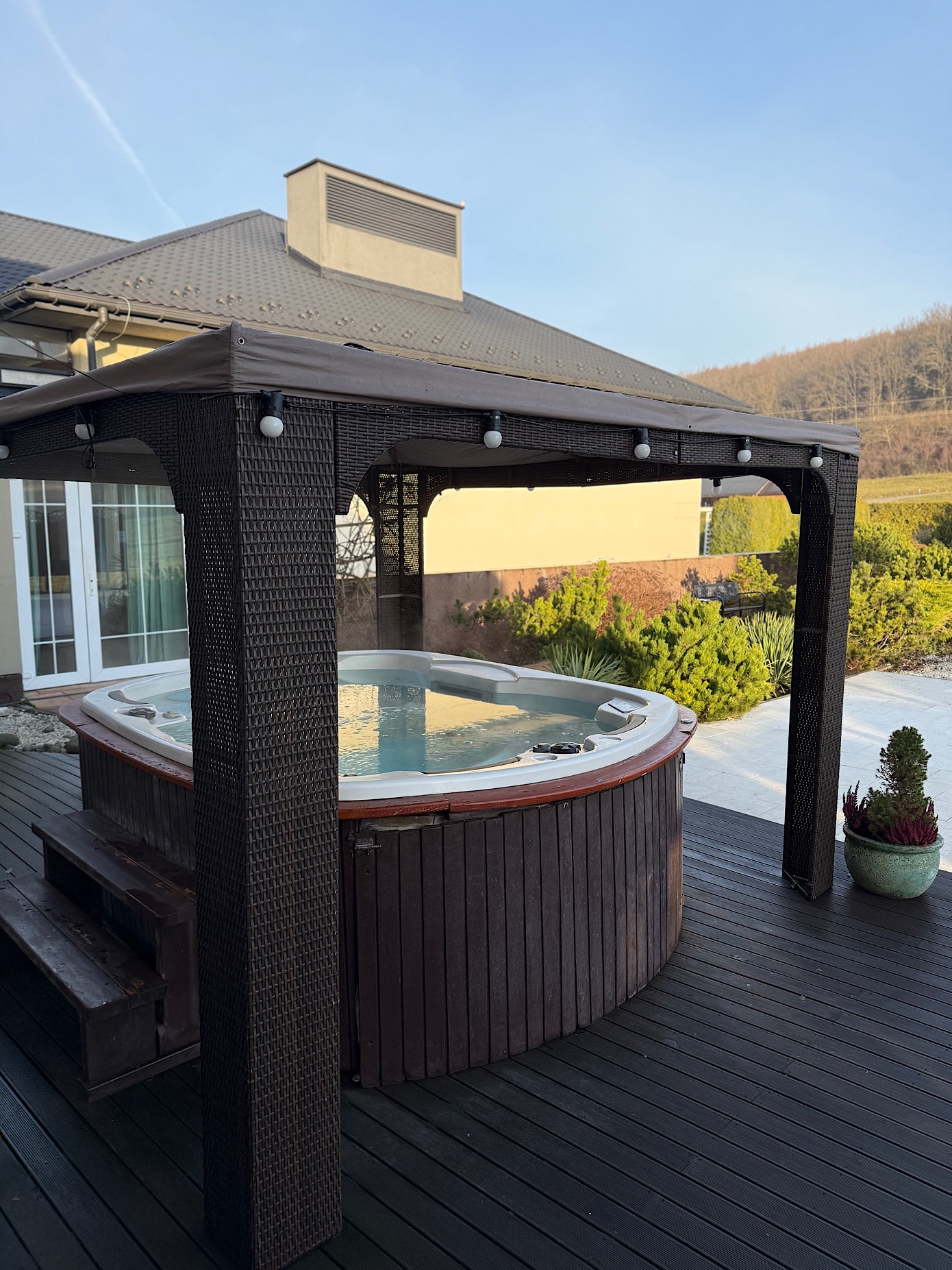 Zarówno wewnątrz, jak i na zewnątrz do dyspozycji są również jacuzzi. Do tej drugiej wychodzi się bezpośrednio ze strefy basenowej.
