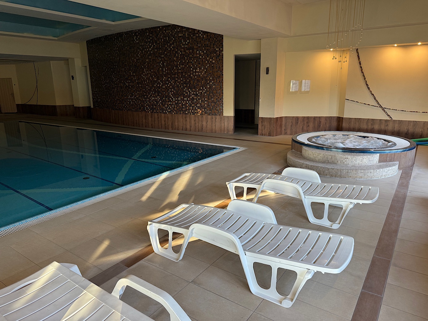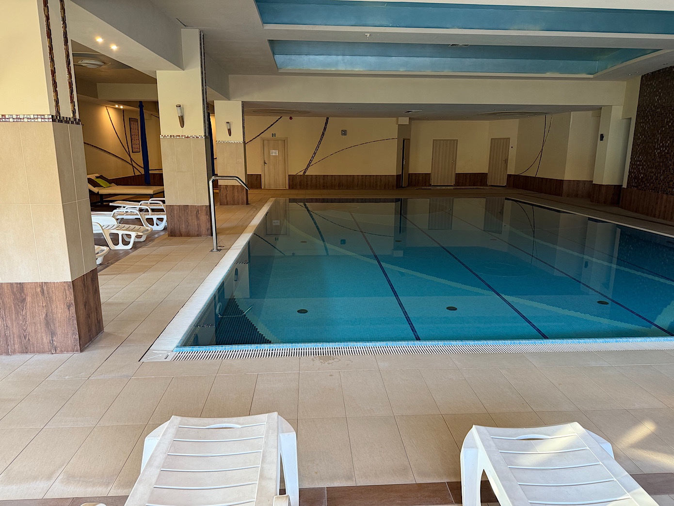 Jeśli chodzi o tematy sportowe to hotel dysponuje basenem, który nie jak w wielu tego typu miejscach jest raptem brodzikiem, ale spokojnie da się tu wykonać porządny trening pływacki. Bardzo to doceniam.