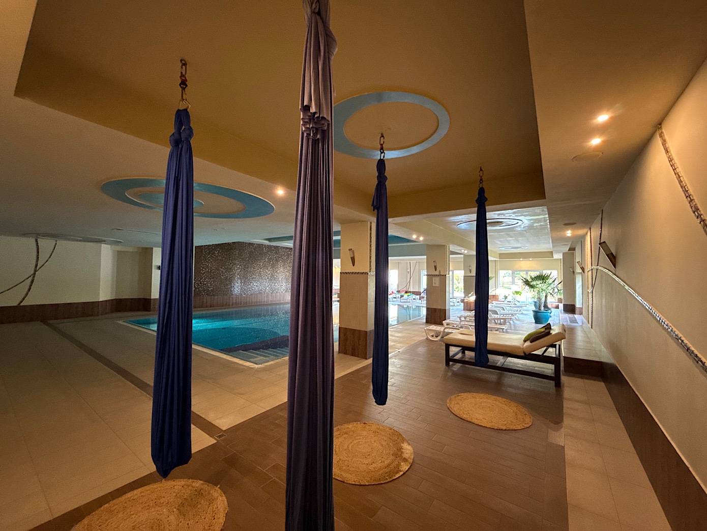 Na basenie możecie również trochę „polatać”. Ja się nie odważyłem, ale w ramach sportowych i relaksacyjnych pakietów istnieje ewentualność skorzystania z zajęć jogi aerial.