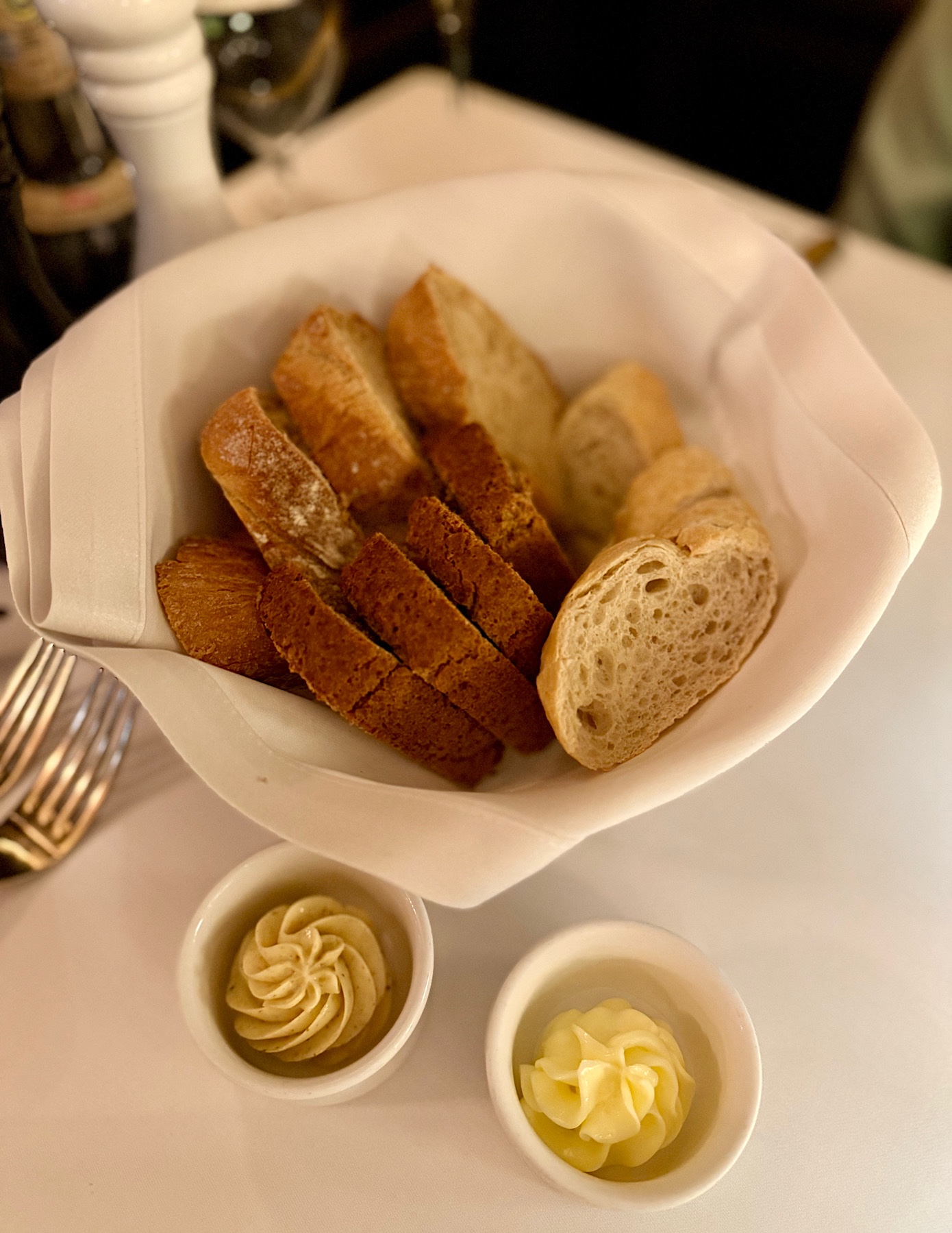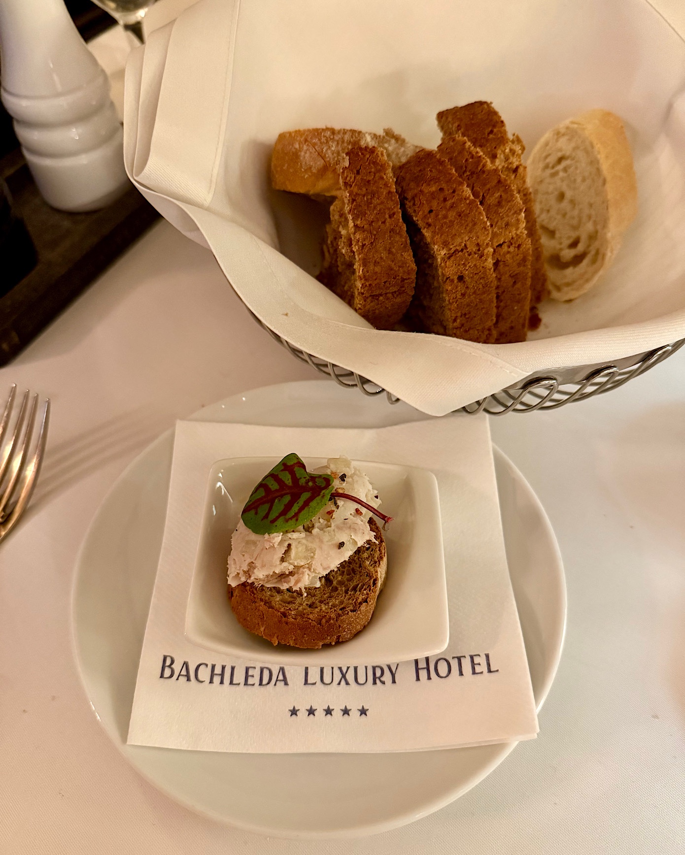 Kelner, jako preludium do kolacji postawił przed nami domowe pieczywo z masłami oraz mięsne i wegetariańskie amuse bouche.