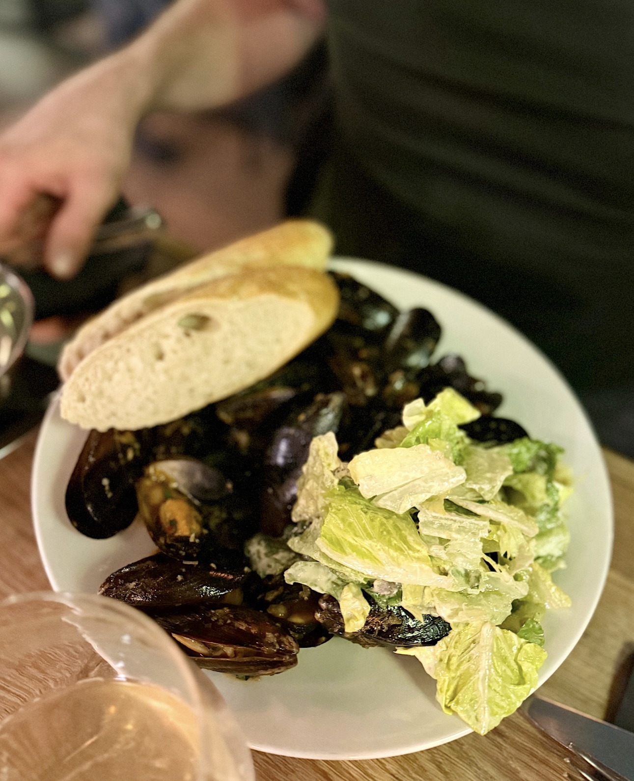 Poprosiłem zestaw lunchowy (59 PLN) składający się z przystawki, dania głównego i deseru. Koleżanka zaordynowała pełnoprawne mule z frytkami (59 PLN) różniące się od tych lanczowych wielkością porcji.