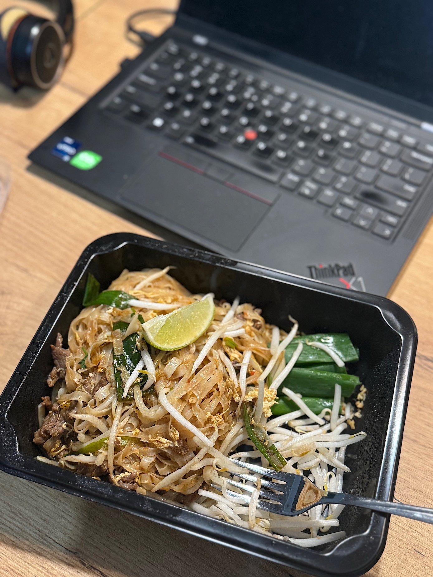 W marcu 2026 luba dostarczyła mi wprost na biurko pad thai z wołowiną za 50 PLN.