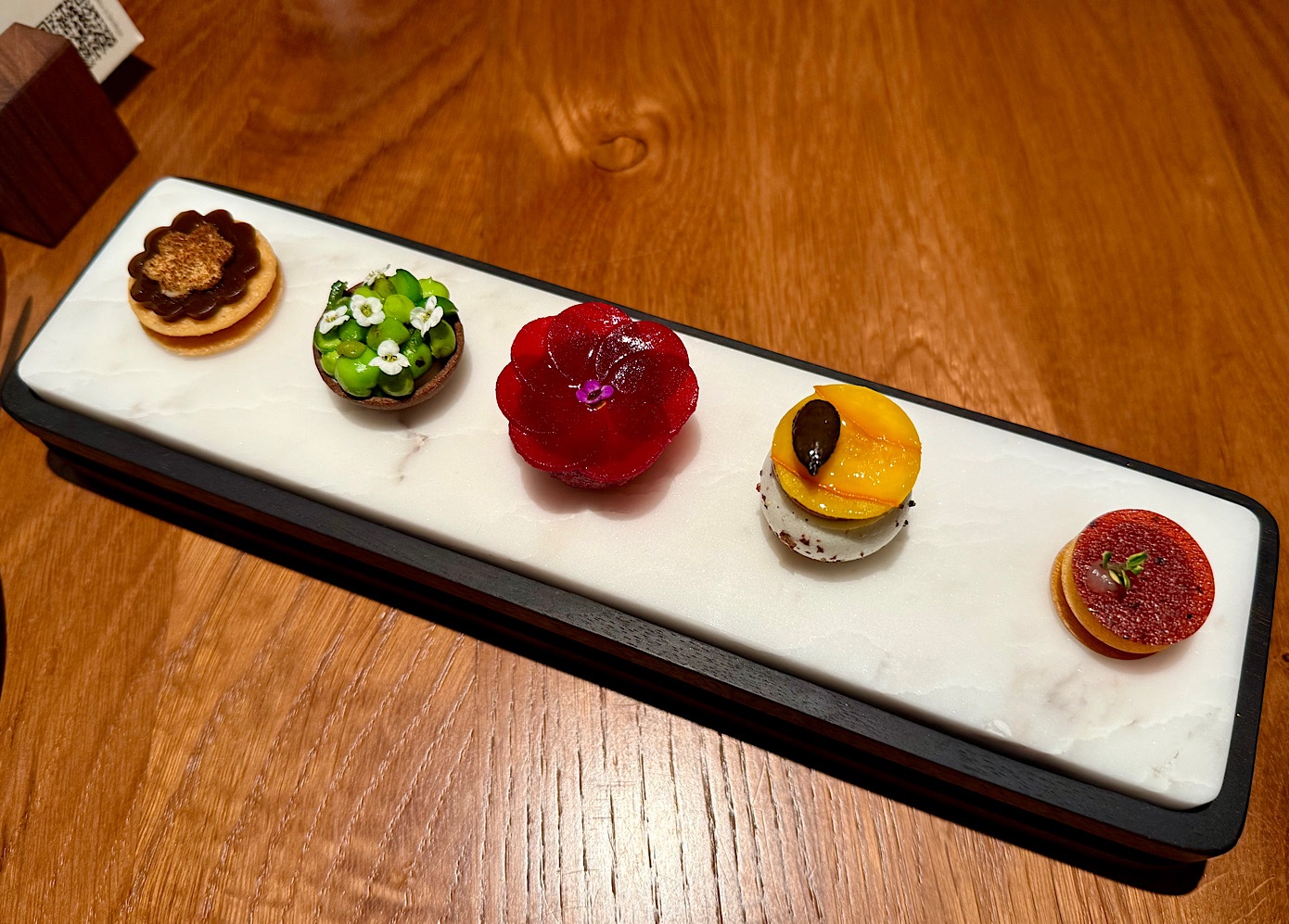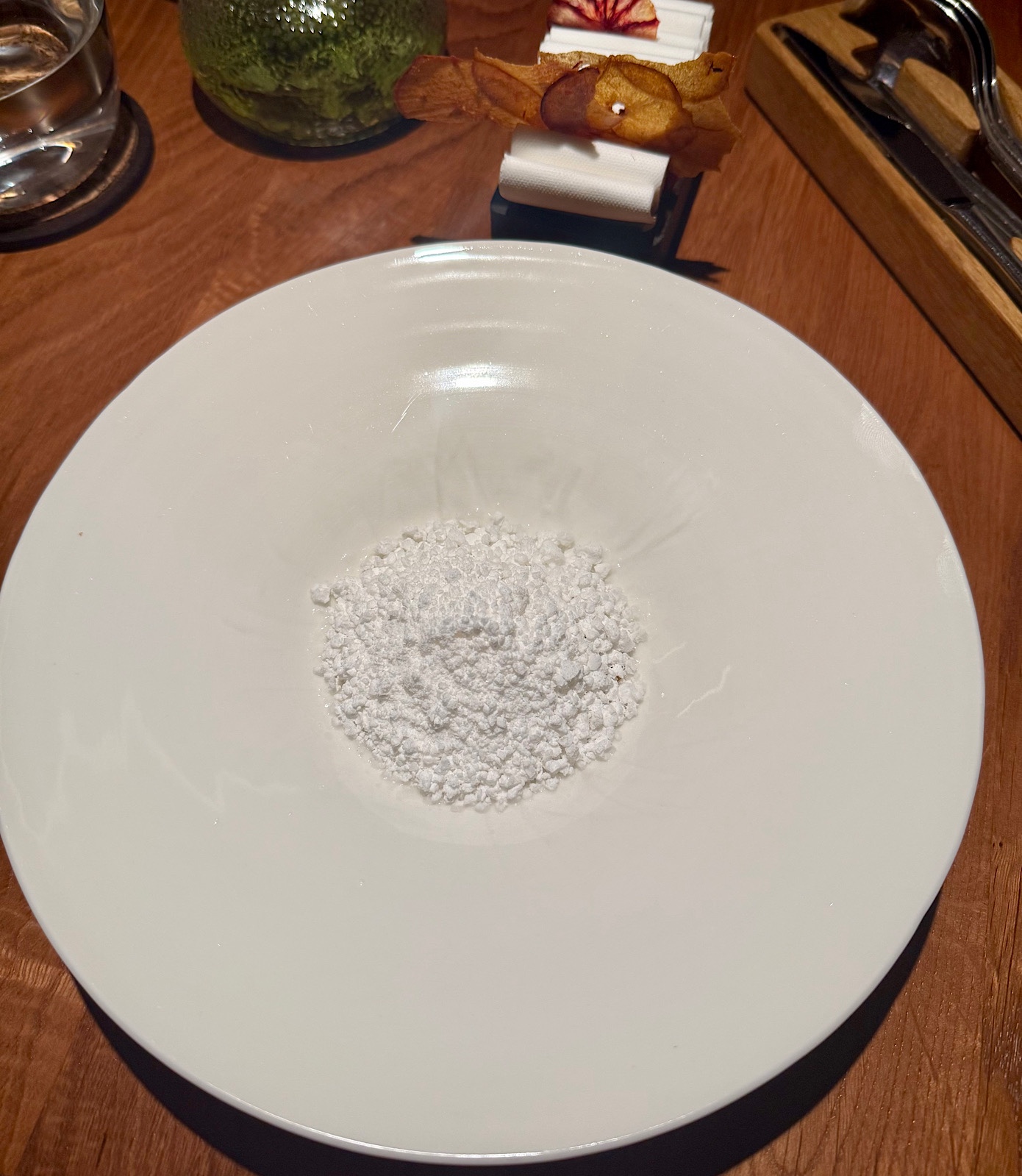 Przedostanim poczęstunkiem były schowane pod proszkiem z białej herbaty owoce i marynaty.