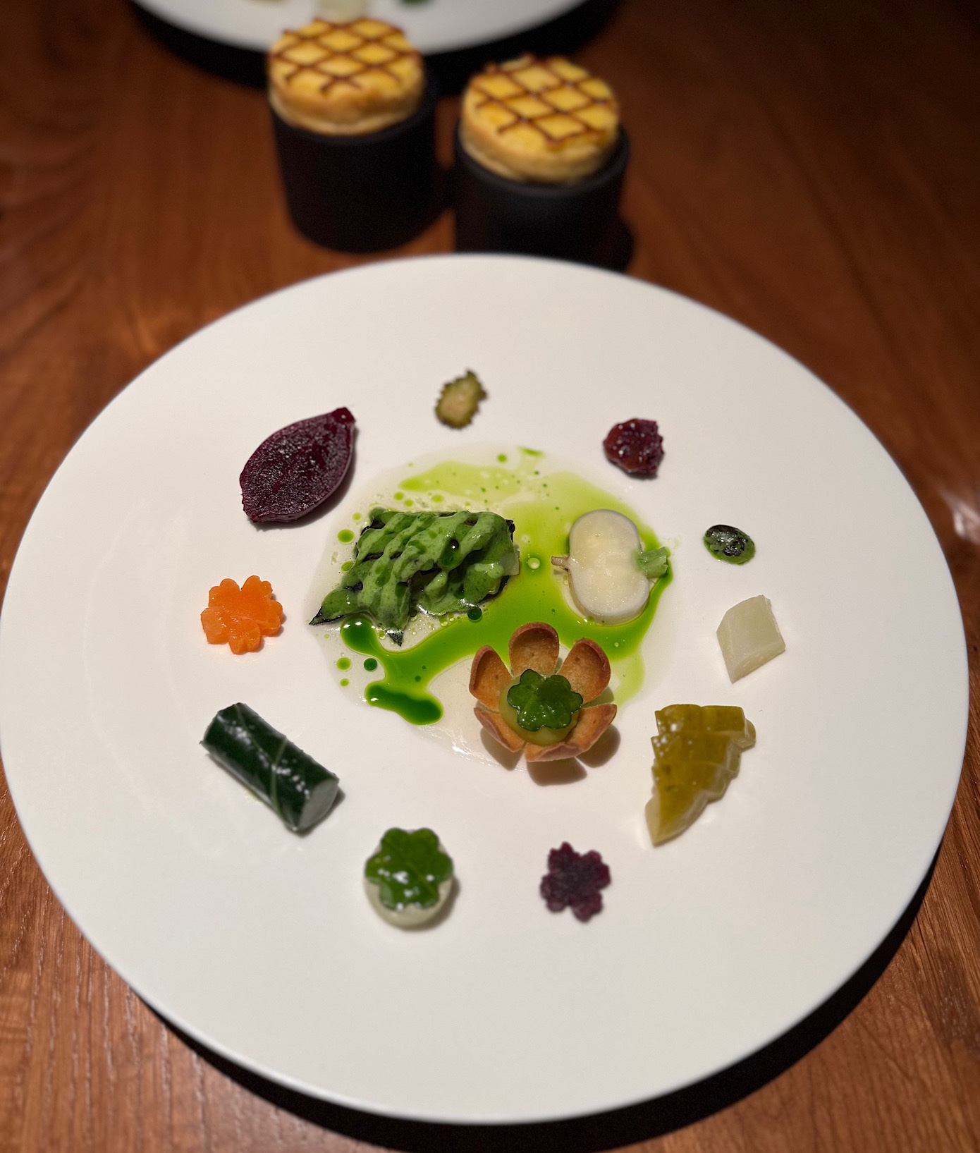 Chwilę po nim pojawił się talerz z warzywami i marynatami ,,crudités’’.