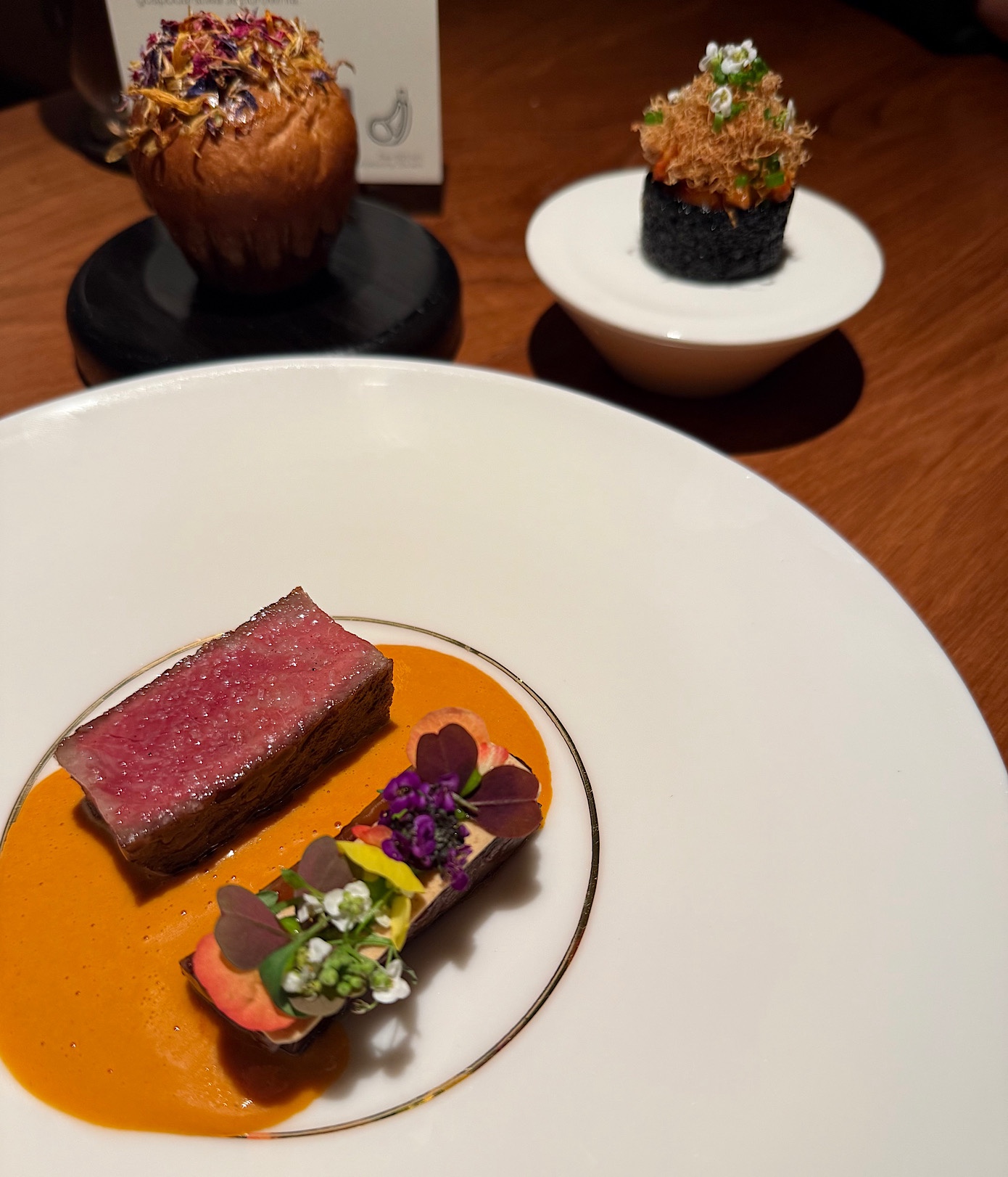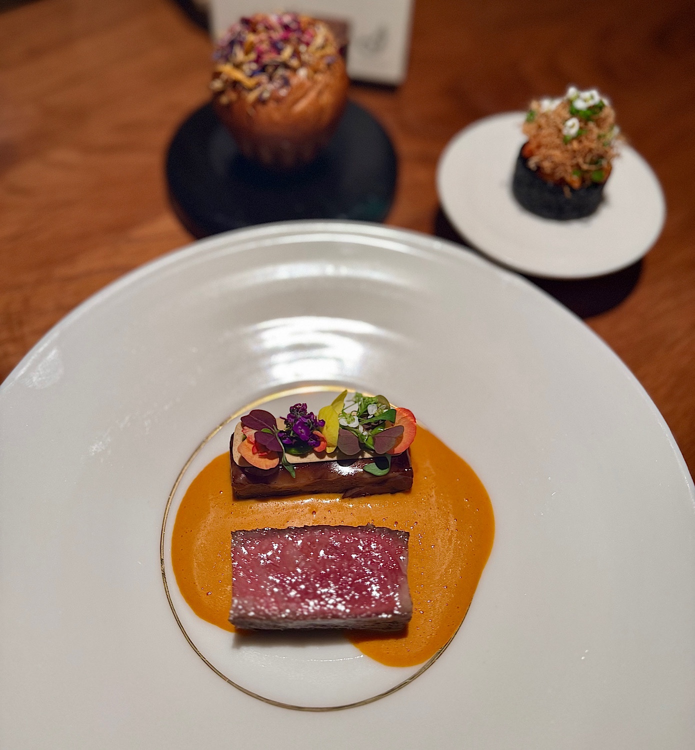 Kropką, a raczej gwiazdką nad „i” był pieczony antrykot i żeberko surf & turf z polskimi rakami.