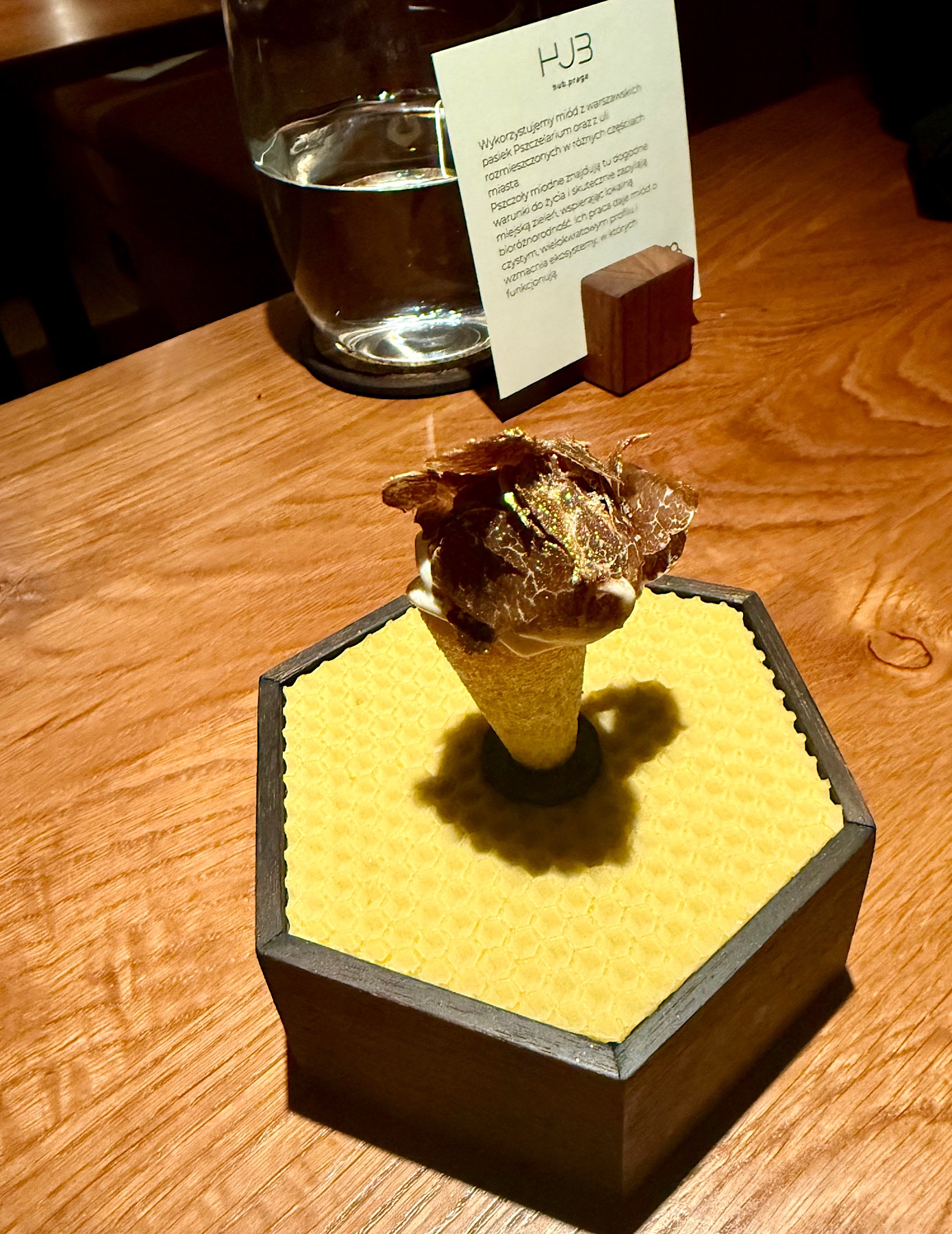 Sekcję deserów otworzyły lody w rożku i warszawskim miodem i fenomenalną białawą truflą bianchetto.